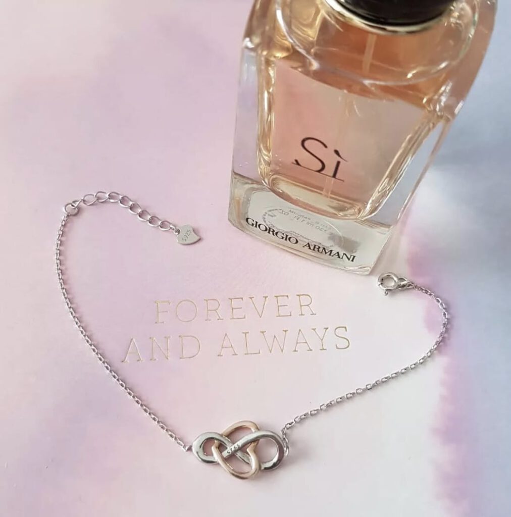 Zo draag ik altijd dit armbandje, samen met een ketting, wat staat voor oneindige liefde.